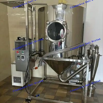 Воздух фильтруется и нагревается и поступает в воздушный распределитель в верхней части сушилки.Жидкость проходит через высокоскоростной центробежный атомизатор в верхней части корпуса башни и (вращаясь) распыляется в чрезвычайно тонкие капли туманаОн может быть высушен в готовые продукты в очень короткое время путем контакта с горячим воздухом параллельно.Готовые продукты непрерывно выводятся из нижней части вышки сушки и циклона сепаратор, и выхлопный газ выпускается вентилятором с индуцированным дыханием.